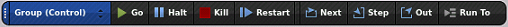 Table 1 summarizes the available debugging commands. The descriptions assume that the command is being applied to a single thread, the thread in focus. In fact, debugging commands are much more flexible than this. They can apply to threads, processes, or groups, or some collection of these. Select the different scopes for debugging commands from the menu on the left of the toolbar, or by selecting the commands from the Thread, Process, and Group menus.