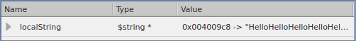 When you dive on a variable, it is not dereferenced automatically. To dereference it so you can see its target, edit the expression. For example, for this pointer to a string: