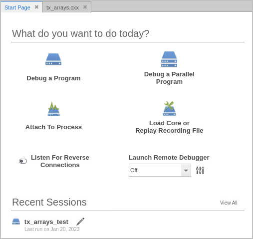 or by selecting Window > Start Page from within the UI if TotalView is already running.