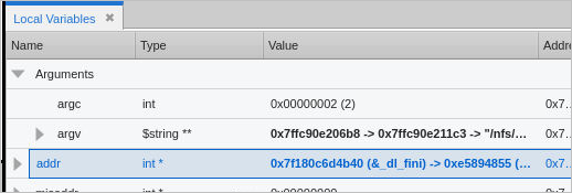 If you turn on memory block painting before starting your program, you’ll be ready to observe memory being allocated or deallocated. For example, the variable addr has not yet been allocated: