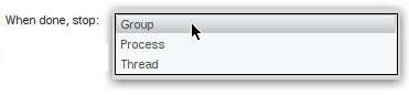 In the UI, the When done, stop drop-down menu defines what else it should stop.