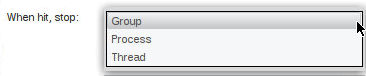 In the UI, the When hit, stop drop-down menu sets which other threads TotalView stops when execution reaches the barrier point.