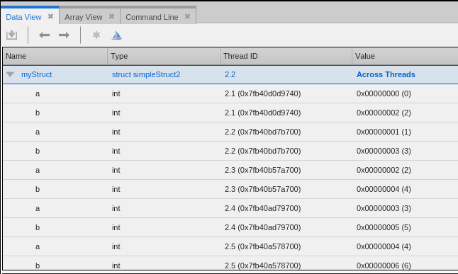 From here, you can dive on a particular structure member to see only that member across all the threads.
