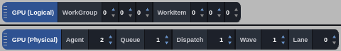GPU (Physical): This toolbar represents the "physical coordinates," such as agent, queue, dispatch, wave, and lane.