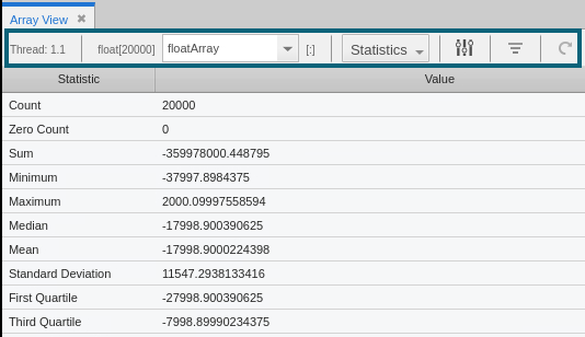 The Array View provides a way to examine array statistics, view array data, and slice arrays for easier analysis.