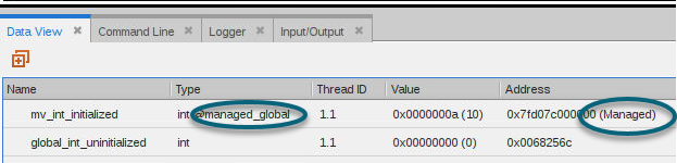 To make it easier to recognize and work with managed variables, TotalView annotates their address with the term “Managed”, and, for statically allocated variables, adds the @managed_global type qualifier.