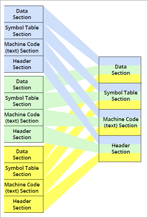 The linker creates one file from all these sections that can be loaded into memory, Figure 168.