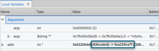 If you turn on memory block painting before starting your program, you’ll be ready to observe memory being allocated or deallocated. For example, the variable addr has not yet been allocated: