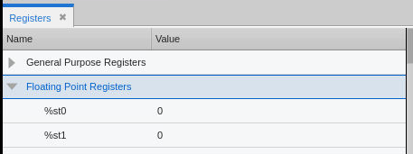 The view includes two collapsible sections, General Purpose Registers and Floating Point Registers.