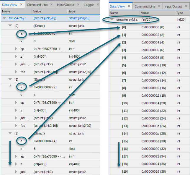 If you have an array of structures data object, you may wish to analyze a particular field of the structure in all the elements of the array; this would require expanding all the elements and then scrolling through the expanded array and visually searching through for that single field.