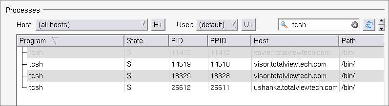You can search for any process using the search box (). If found, the process will display in the program pane.