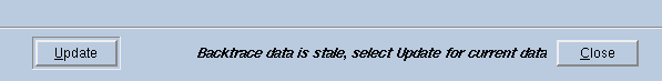 If a thread/process state changes, the data shown in the window becomes stale or out-of-date, and the following message is displayed at the bottom of the window, between the Update and Close buttons.
