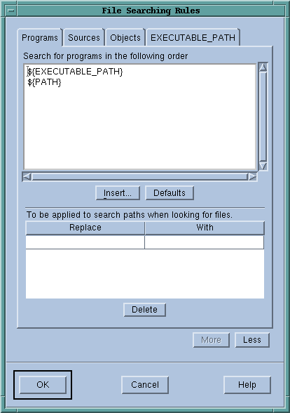 *Programs: corresponds to the EXECUTABLE_SEARCH_PATH and EXECUTABLE_SEARCH_MAPPINGS variables