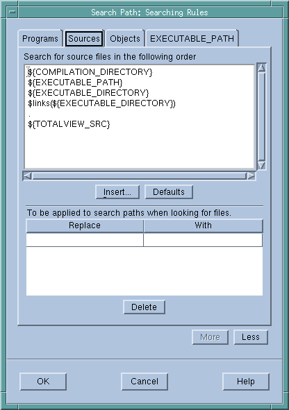 Figure 128 File > Search Path Dialog Box, Sources Tab