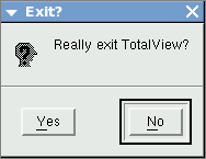 Exits from TotalView. Before TotalView exits, it asks you to confirm that you really want to exit.