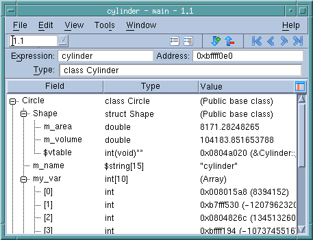 You can edit the address of a variable in a Variable Window by editing the value shown in the Address field. When you edit this address, the Variable Window shows the contents of the new location.
