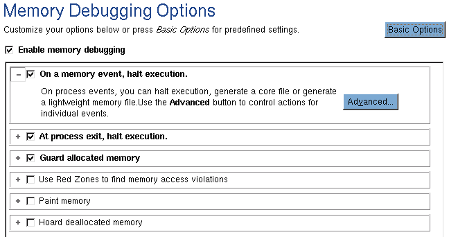 Enable painting and hoarding in the Memory Debugging Options Page, Figure 24.