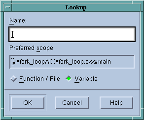 Having TotalView locate a variable or a function is usually easier than scrolling through your sources to look for it. Do this with the