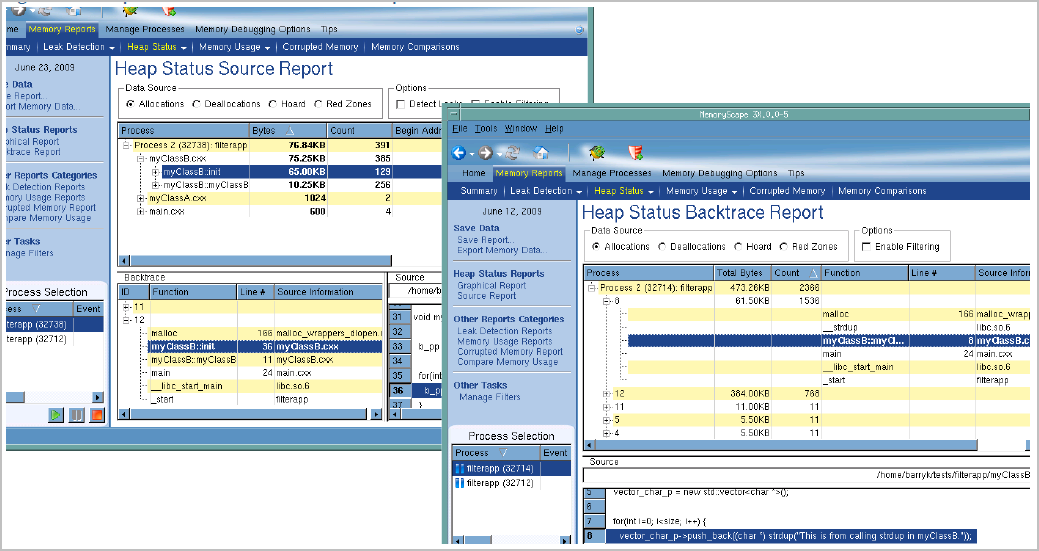 Figure 63: Heap Status Source and Backtrace Reports