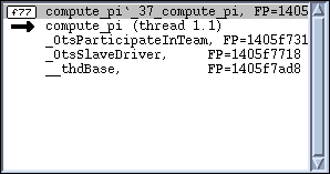 TotalView inserts a special stack parent token line in the Stack Trace Pane of OpenMP worker threads when they are stopped in an outlined routine.
