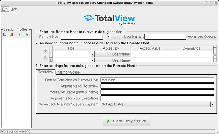 The TotalView Remote Display Client is simple to use. Just enter the required information, and the Client does the rest.