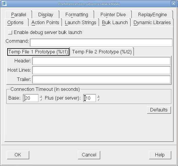 This page configures the TotalView bulk launch system which launches groups of processes simultaneously.