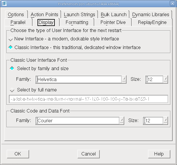 This page specifies which user interface to use and which fonts are used in the classic user interface and how code is displayed.