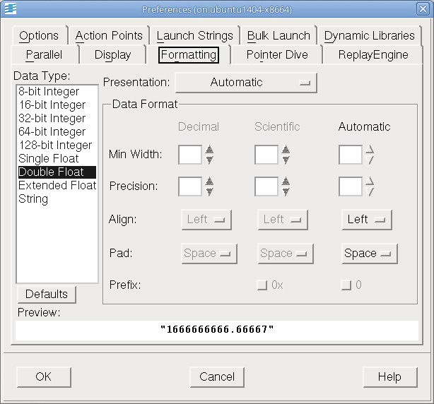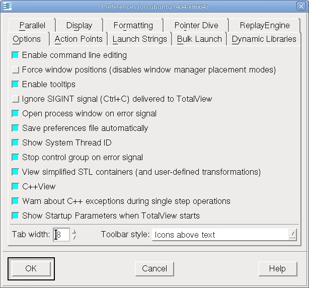 Some settings, such as the prefixes and suffixes examined before loading dynamic libraries, can differ between operating systems. If they can differ, TotalView can store a unique value for each. TotalView does this transparently, which means that you only see an operating system’s values when you are running TotalView on that operating system. For example, if you set a server launch string on an SGI computer, it does not affect the value stored for other systems. Generally, this occurs for server launch strings and dynamic library paths.