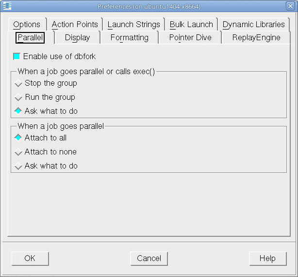 The options on this page control whether TotalView stops or continues executing when a process creates a thread or goes parallel. By stopping your program, you can set breakpoints and examine code before execution begins.