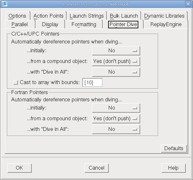 The options on this page control how TotalView dereferences pointers and casts pointers to arrays.