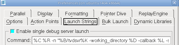 You can customize the default command string that TotalView uses when it automatically launches TotalView server for a single process. This string is accessible via the File >Preferences > Launch Strings dialog in its Command text box: