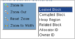 You can also use the search controls to move from memory block to memory block using the curved arrow buttons in the control area. The search button tells MemoryScape what kind of block to look for. There are four choices, shown in