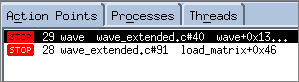 sign, both in the Source Pane at line 91 and in the Action Points tab where all action points in a program are listed.