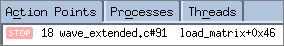The breakpoint is set and added to the Action Points tab. If a breakpoint already exists at that location, this action toggles the setting to delete the breakpoint.