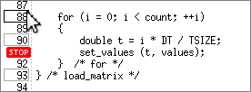 NOTE: A breakpoint can be set if the line number is boxed in the Source Pane: