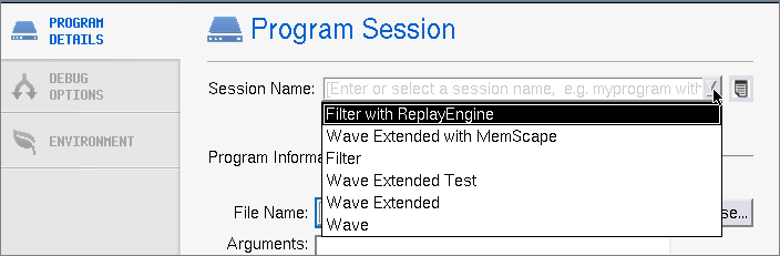If you select a previous session, you can edit any field’s values, even the Session Name to create an entirely new session. Then just click Start Session to launch that new debugging session.