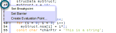 NOTE: Setting a breakpoint on a line may cause that breakpoint to appear at many code locations. For example, setting a breakpoint on a line of templated code may cause the breakpoint to appear at all instances of that template.