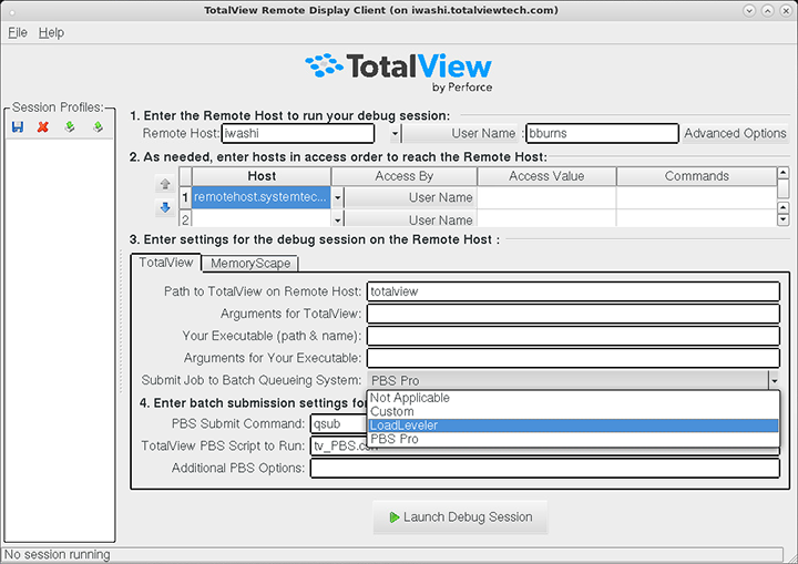 TotalView Remote Display can submit jobs to the PBS Pro and Load­Leveler batch queuing systems.
