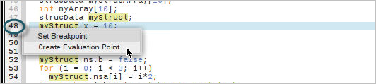 You can set an evalpoint at any source line that generates executable code. Valid source lines have a bold line number. Create an evalpoint in these ways: