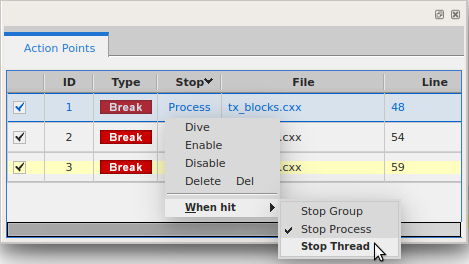 Setting and Managing Action Points (Breakpoints)