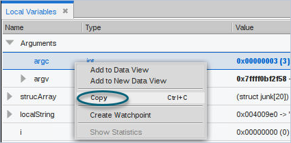 Copy a variable definition from the TotalView UI to another document by right-clicking on the variable and selecting
