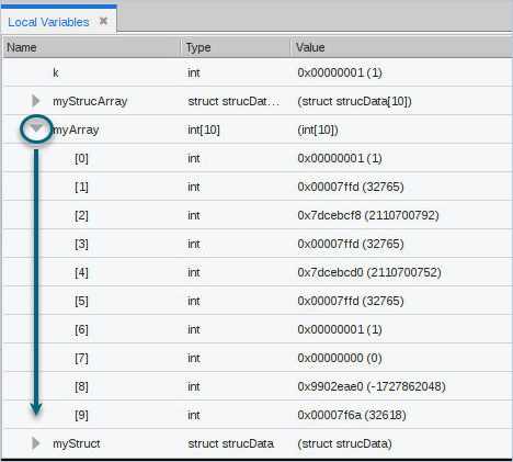 NOTE: Global variables are not displayed in the Local Variables view. To view them, add them to the Data View. See