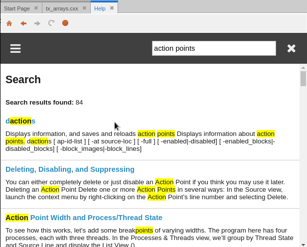 To search the help, enter a search term in the search bar, for example, “action points.”
