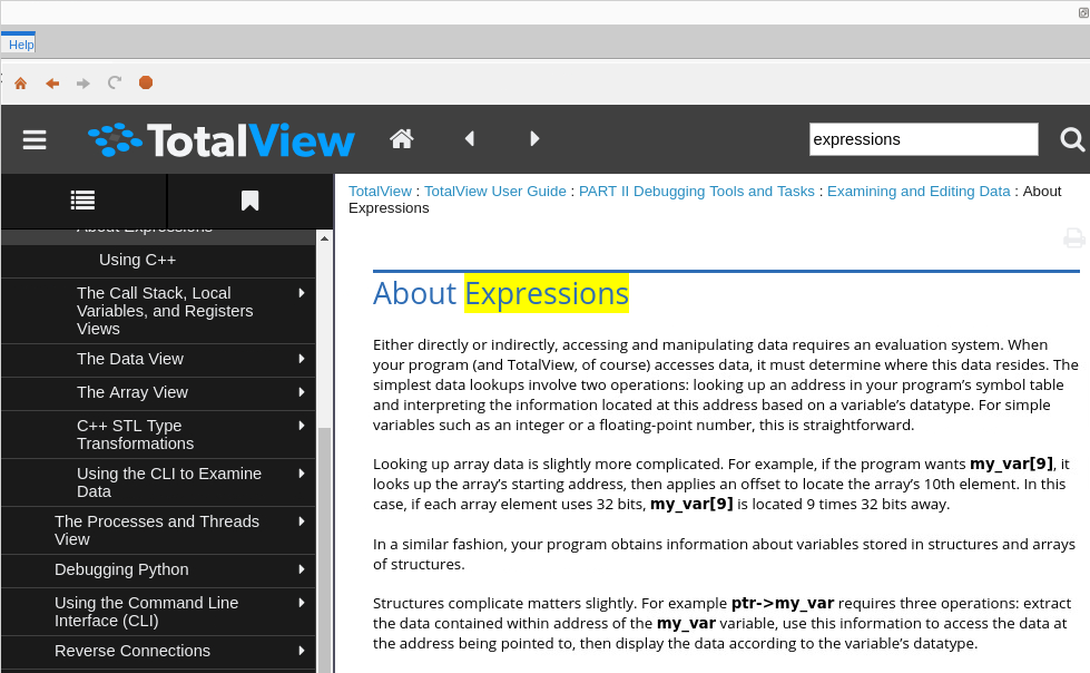 During a debugging session, open relevant help topics (called “context-sensitive” help) while in various views and windows by placing the cursor over the area you are interested in and pressing F1.