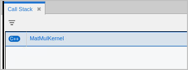 The logical coordinates of the GPU focus threads are displayed in the GPU toolbar. You can use the GPU focus thread selector to change the GPU focus thread. When you change the GPU focus thread, the logical coordinates displayed also change, and the Call Stack and Source view are updated to reflect the state of the new GPU focus thread.
