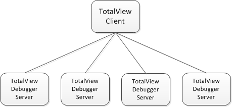 Figure 120shows the TotalView client connected to four TotalView debugger servers (