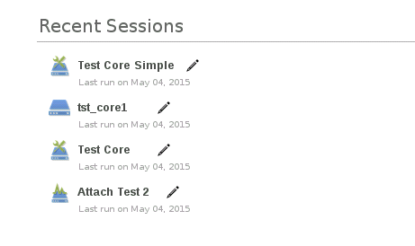 The Session Editor displays your most recent sessions on the Start Page so you can quickly continue a debugging session where you left off.