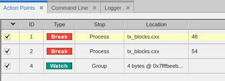 TotalView assigns unique ID numbers to each action point. These IDs display in the Action Points view.