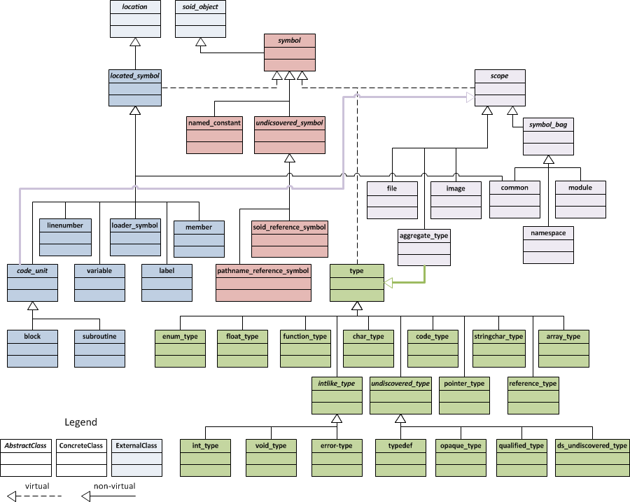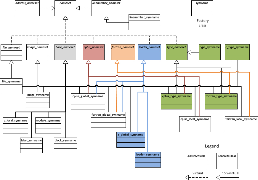 The symbols described in the previous section all reside within namespaces. Like symbols, namespaces also have properties. Table 29 lists the properties associated with a namespace. Figure 213 illustrates how these namespaces are related.