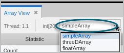 By repeating these steps, you can add any number of arrays to the Array View. When you add multiple arrays to the Array View, they appear in the Array Expression dropdown so you can easily switch between the arrays that you are examining.